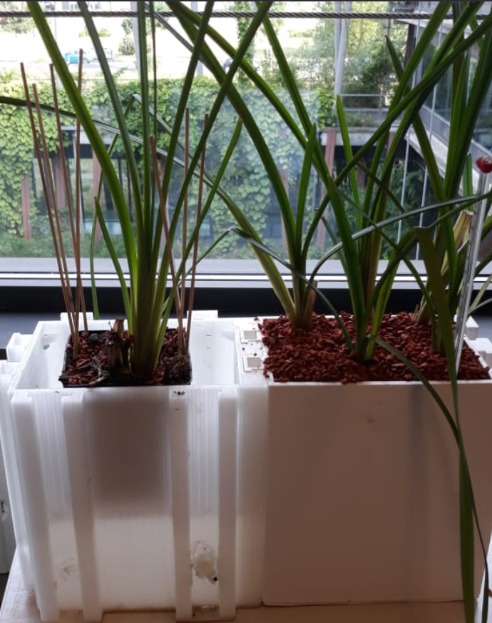 We offer an innovative and sustainable solution for urban greenery by combining interlocking modular planting systems with Biopolymer-coated biodegradable biofilters that treat greywater for safe reuse in irrigation.